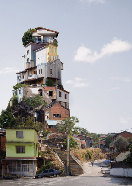 With only 10 days to absorb the architectural and urban essence of Izmir city, the artist diligently explored locations such as Urla, Narlıdere, Konak, Çankaya, Alsancak, Darağaç, and Bostanlı, as she meticulously documented her observations through thousands of photographs. The first prototypes had a remarkable resemblance to Cairo, prompting a recalibration of composition and building choices. They were rooted in familiarity, reflecting what was known and comfortable. However, the artist realized she was confined to the familiar, hesitating to venture into the unknown. To break this pattern, additional technical architecture research became imperative which influenced new choices based on considerations such as perspective, levels, and light. Setting aside emotions, the process transformed into a series of mental calculations, utilizing a diverse array of materials. It was at this point that the collages aesthetically captured the city's essence from the artist's visual memory.